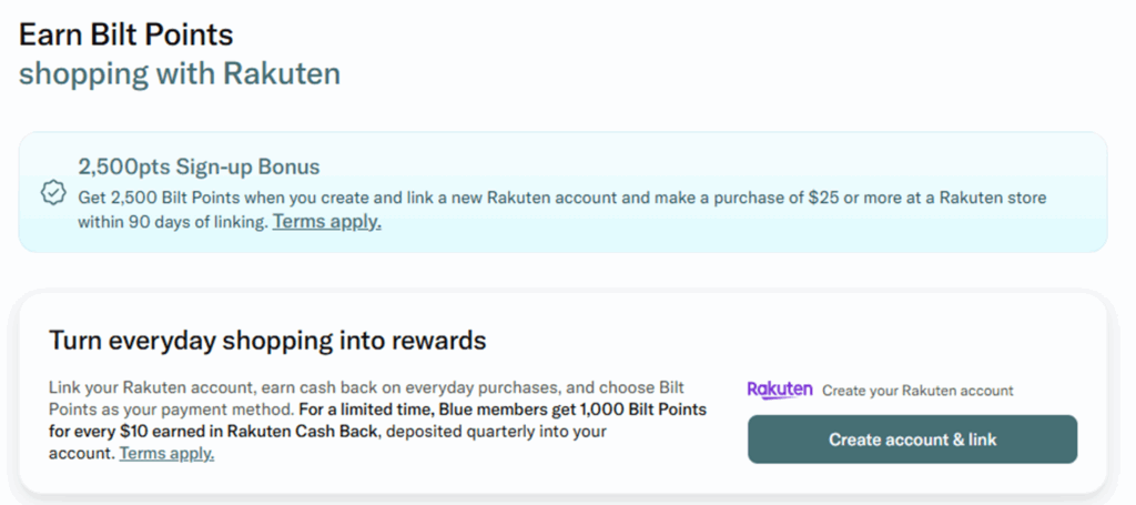 That’s right, if you are a new Rakuten member, you can do better than the 2500 point bonus when creating the new account through Bilt. To get 5000 Bilt points (or $50), create your new Rakuten account BEFORE linking it on Bilt. 5000 points would be enough for 1 night in a category 1 Hyatt hotel or a short nonstop flight on American Airlines when booked through Alaska Atmos!