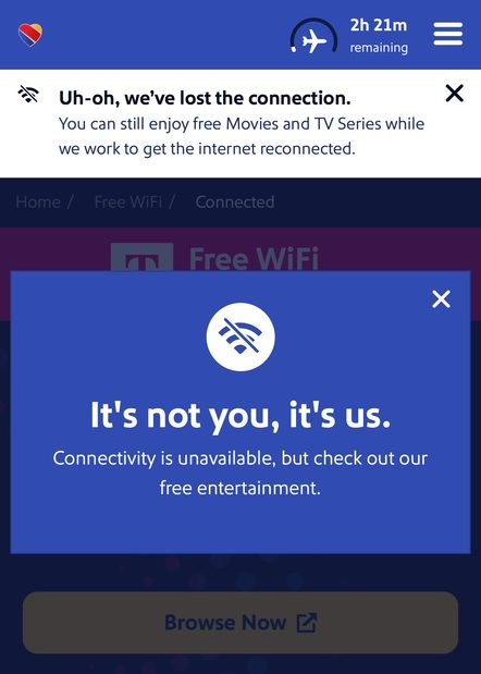 Starting in late October, Southwest made WiFi free for all Rapid Rewards members on every flight. Free WiFi sounds like a great improvement, but the implementation has created one unexpected issue.
